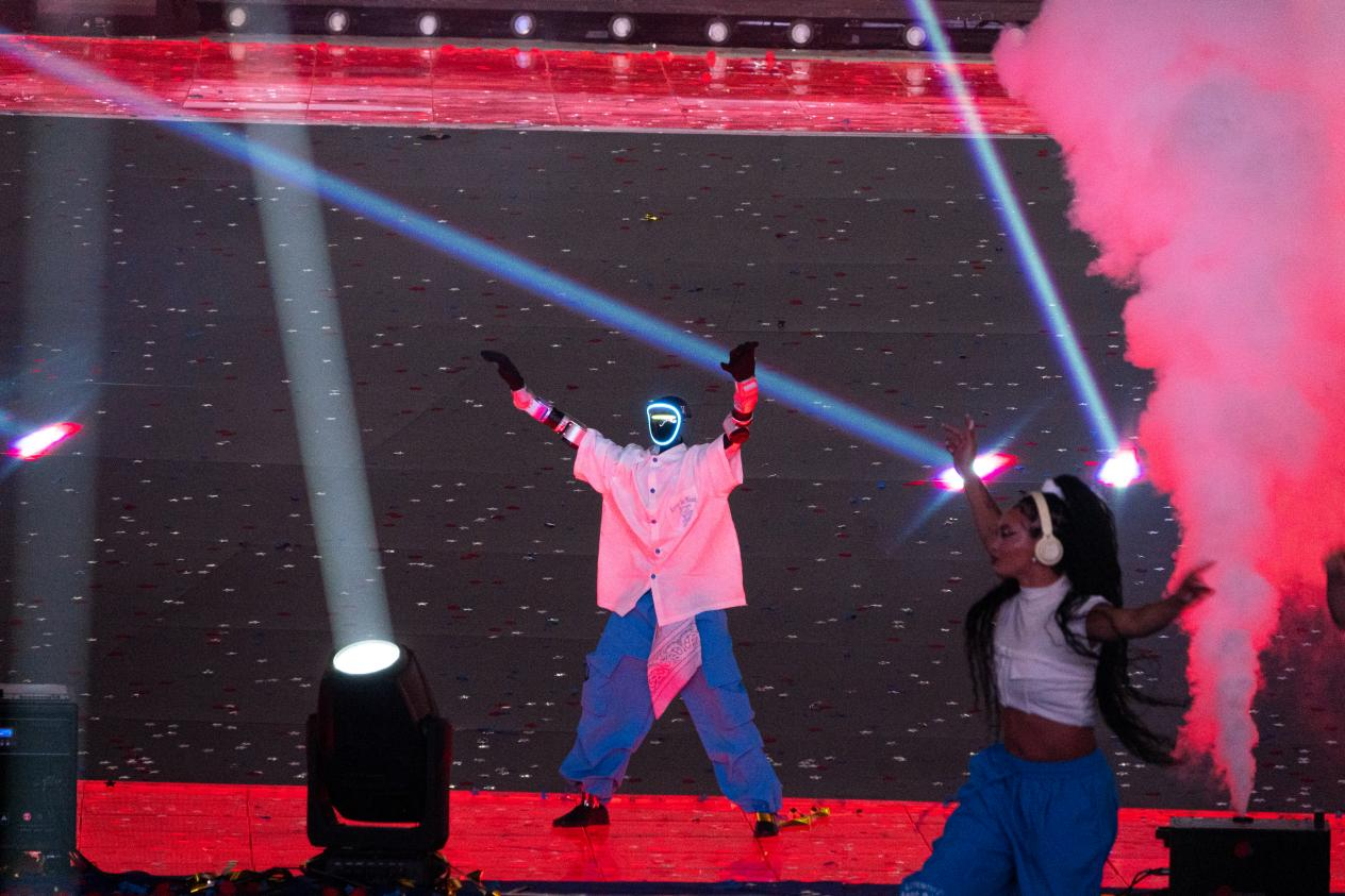 (天九领航机器人亮相国家体育场演出)